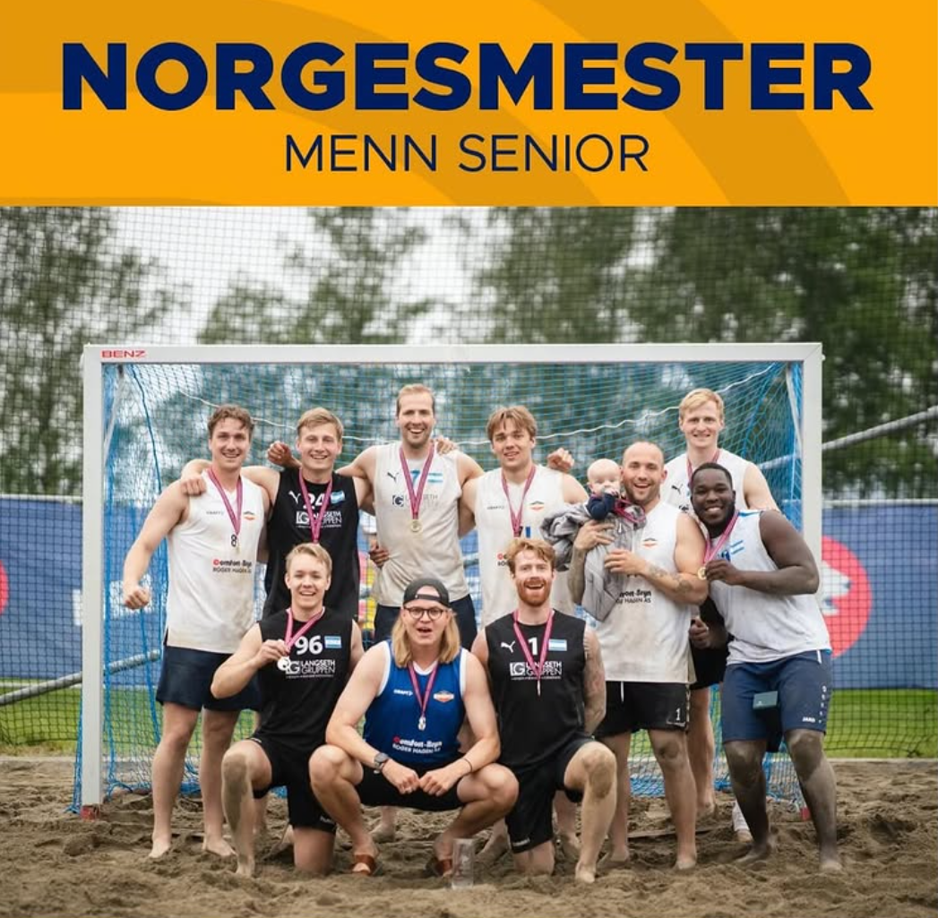 Så fikk vi en reprise av fjorårets finale. På motsatt banehalvdel står Langangen som vi slo 2-0 etter å ha vunnet begge sett på sudden death. Nedregård, mannen som avgjorde det hele i fjor har flyttet over dammen, så da måtte resten av oss stå fram. I tillegg hadde Ørjan takket ja til å jobbe dugnad for forbundet, og satt som kommentator da hans eget lag spilte finale🎤 Men Nordstrand har nok av gode beachbois å velge mellom. Vi kommer godt ut av første sett, som vi vinner 16-23. I andre omgang må vi legge om taktikken, siden Kjetil gikk ut med rødt kort i slutten av første omgang. Alfred går inn mellom stengene og Jesper flyttes ut til forsvar. Og inn i angrep kommer selveste Bando🥶 Langangen hadde åpenbart lite trua på Ibbi. Blåtrøyene prioriterer å dekke Chris, Davik og André, noe som ga store rom for Ibbi på linja. Chris dytta ballen til Ibbi gang på gang og Bjørndals store sønn er tilnærmet feilfri og setter den ene topoengeren etter den andre, og tar fortjent med seg finalens BB-pris hjem. Dermed vinner vi også andre omgang med sifrene 20-31 🙌 Etter to sett blir stillingen 2-0 og vi er Norgesmestere i 2025 også🤩
