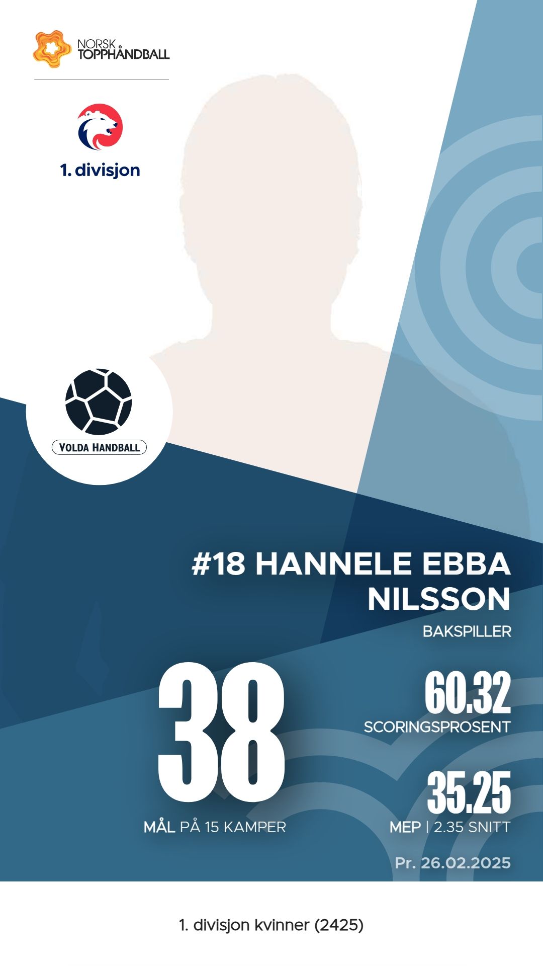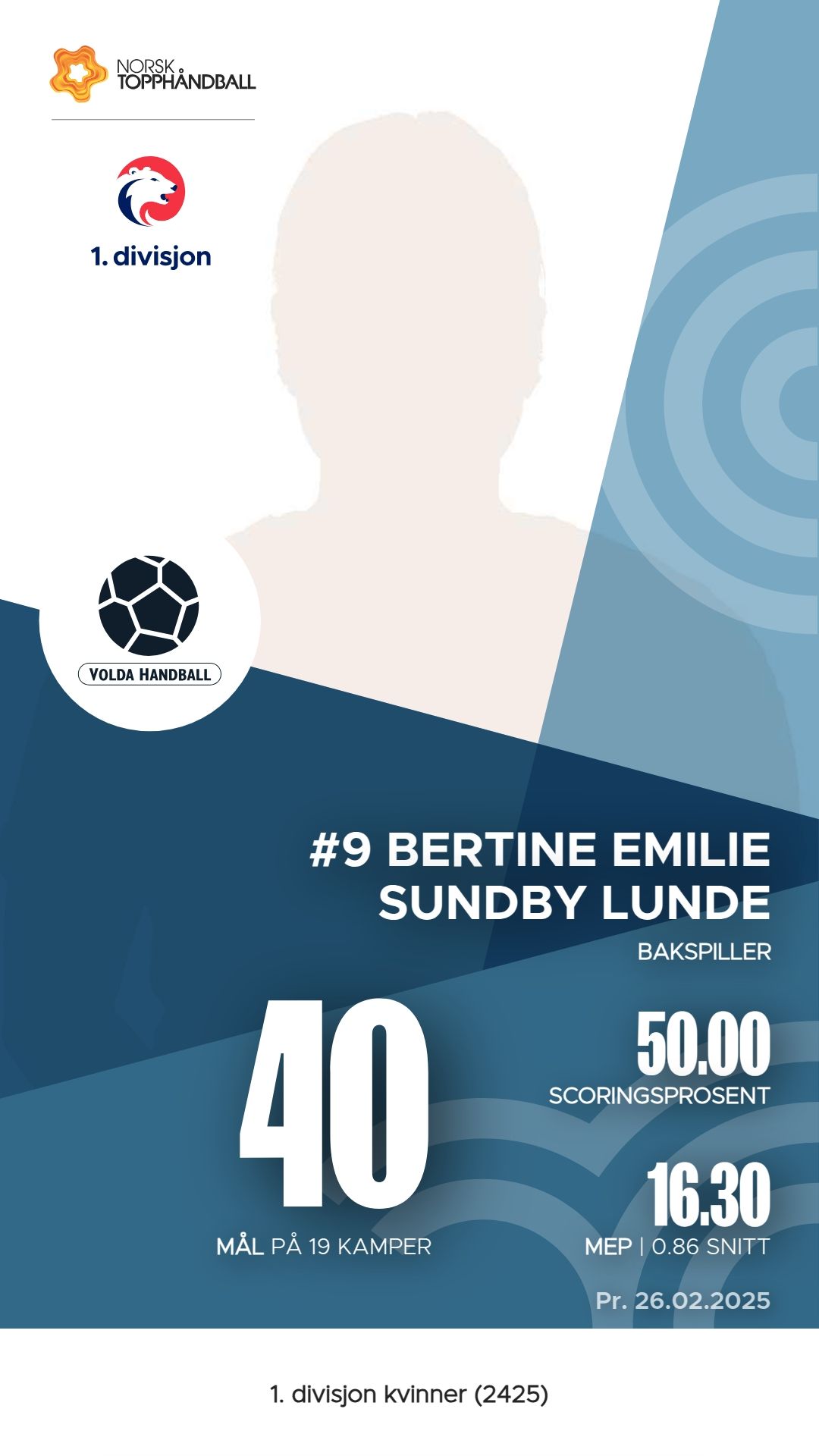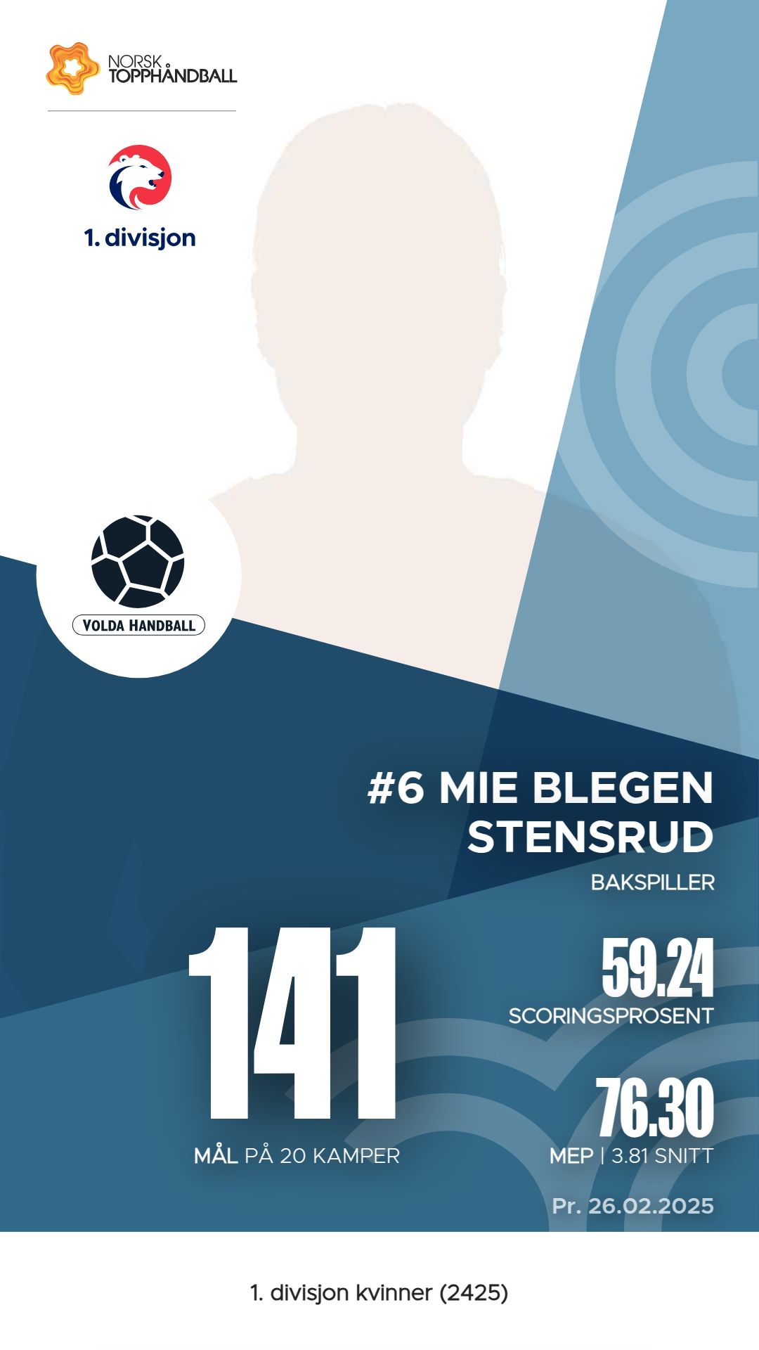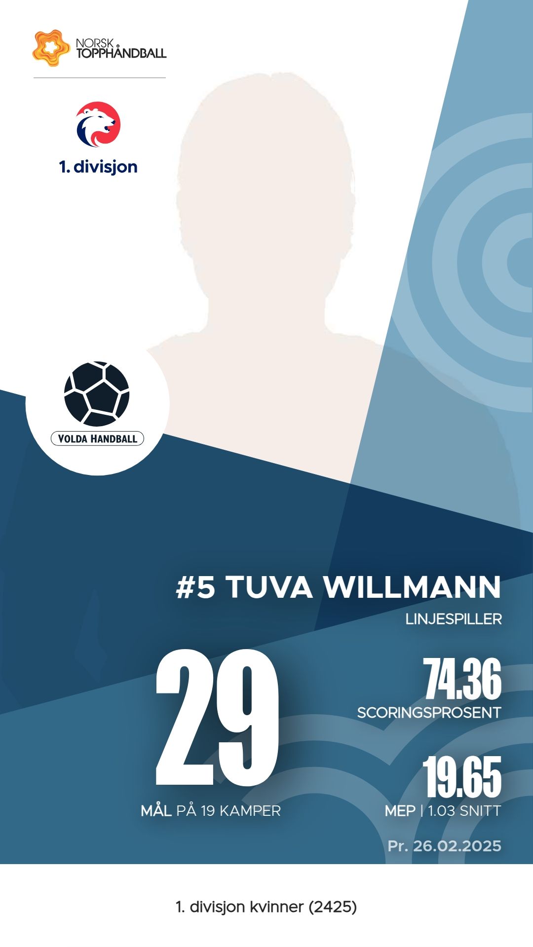 Volda har flere dyktige spillere som har utmerket seg i sesongen. Mie Blegen Stensrud har vært en nøkkelspiller med 8 mål og 8 assist, noe som gir henne en M.E.P. på 7.05. Tuva Willmann følger tett etter med 7 mål og 1 assist, og en M.E.P. på 5.45. Hannele Ebba Nilsson har også gjort sitt med 5 mål og 4 assist, selv om hun har fått 2 straffeslag imot seg. Bertine Emilie Sundby Lunde har bidratt med 7 assist, som viser hennes evne til å skape sjanser for laget. Disse spillerne er avgjørende for Voldas suksess i 1. divisjon.