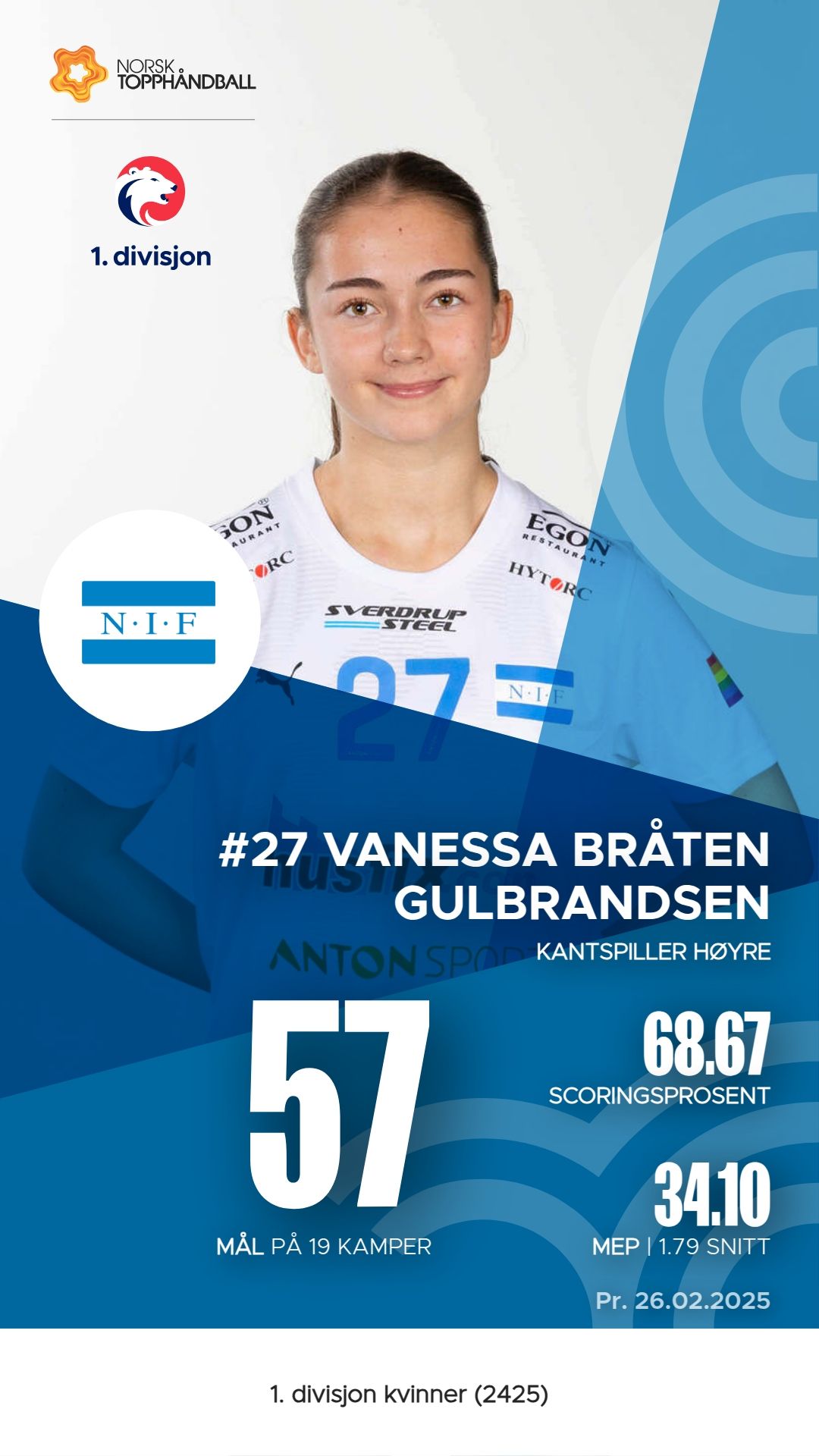 Nordstrand har flere dyktige spillere som bidrar sterkt til lagets prestasjoner i 1. divisjon. Sara Benedicte Fredheim Barbosa har vist seg som en nøkkelspiller med 8 mål på 12 skudd og en M.E.P. på 4.1, noe som gjør henne til en av de mest effektive på laget. Vanessa Bråten Gulbrandsen har også gjort seg bemerket med 3 mål og 1 assist, til tross for begrenset spilletid. I målet har Martina Jurisic bidratt med 2 redninger, og Live Andrine Berli har vært solid med 5 redninger. Med slike talenter i stallen er Nordstrand godt rustet for kommende kamper.